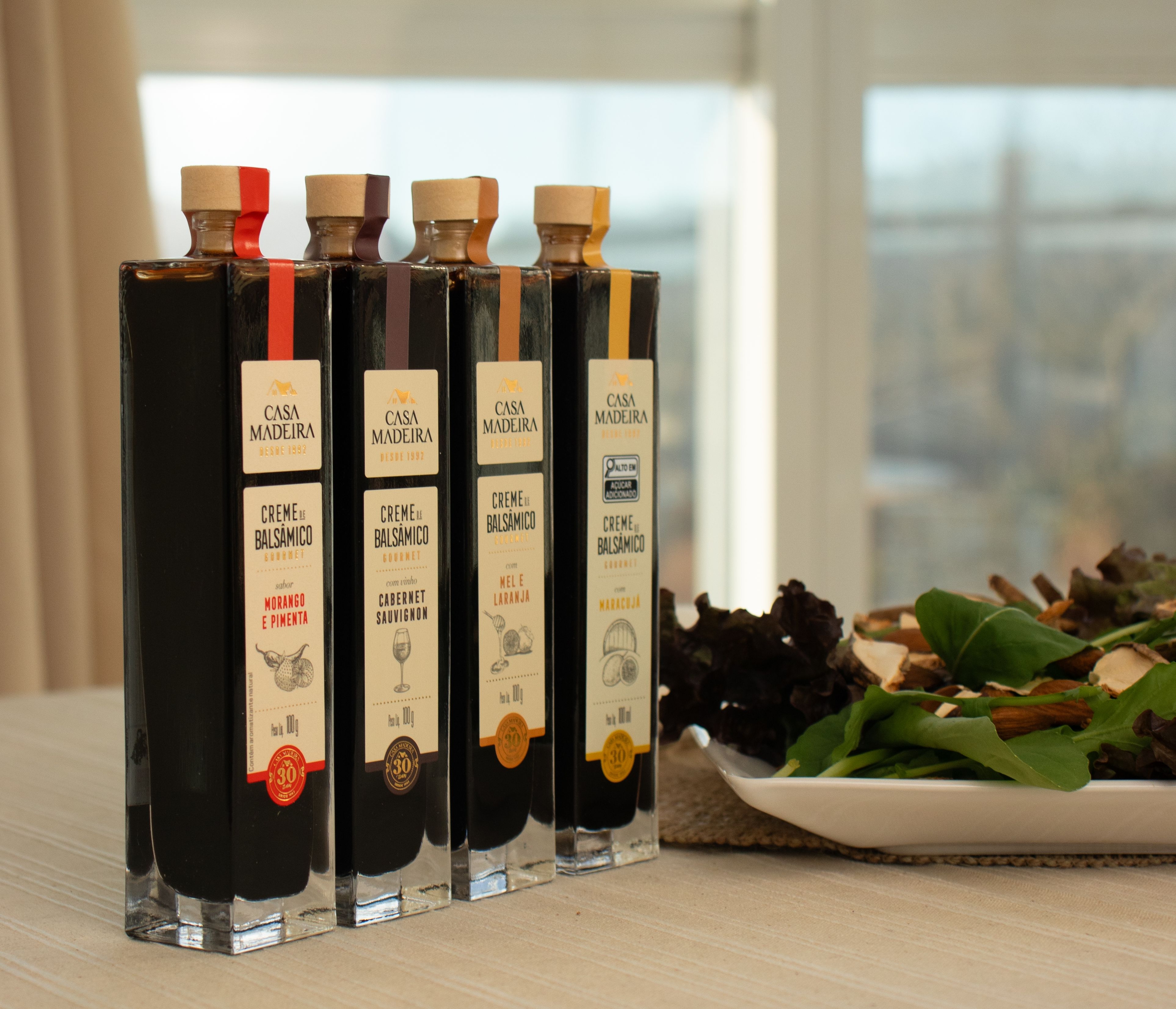 Creme de balsâmico elaborado a partir da redução de vinagre balsâmico,envelhecido em barricas de carvalho, e enriquecido com vinho Cabernet Sauvignon Casa Valduga.Combinação perfeita entre as características aromáticas e gustativas do vinho aliadas à estruturae acidez do aceto balsâmico. Não é considerado um produto alcoólico.