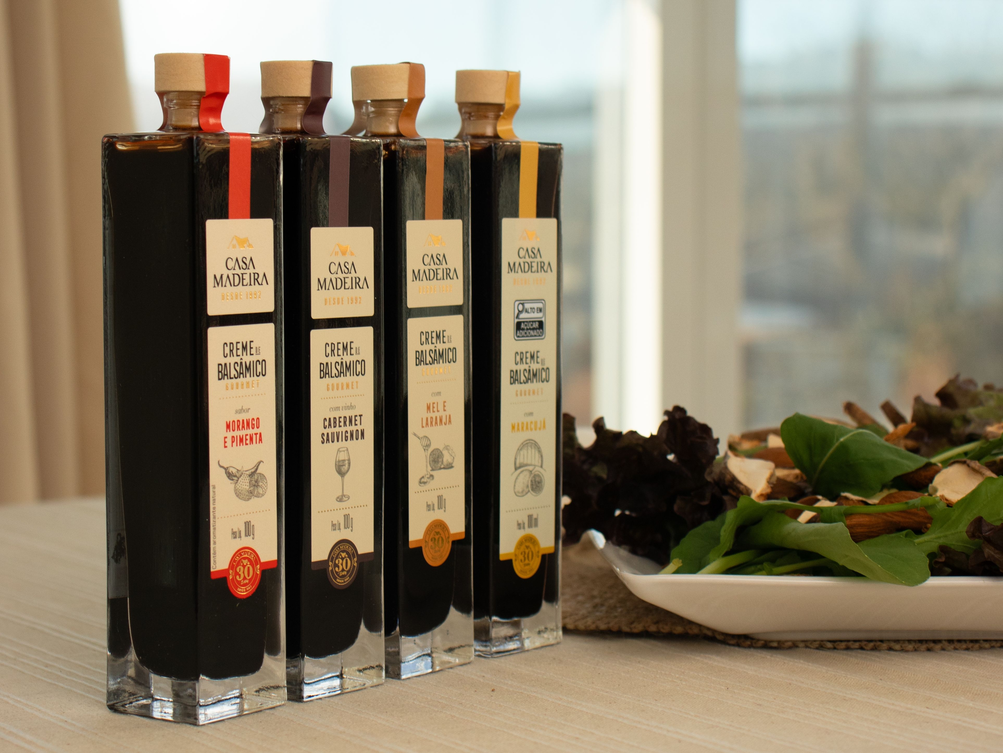 Creme de balsâmico elaborado a partir da redução de vinagre balsâmico, envelhecido em barricas de carvalho, aromatizado com morango e pimenta. É uma harmonia perfeita entre dulçor, picância e acidez para explorar os sentidos.