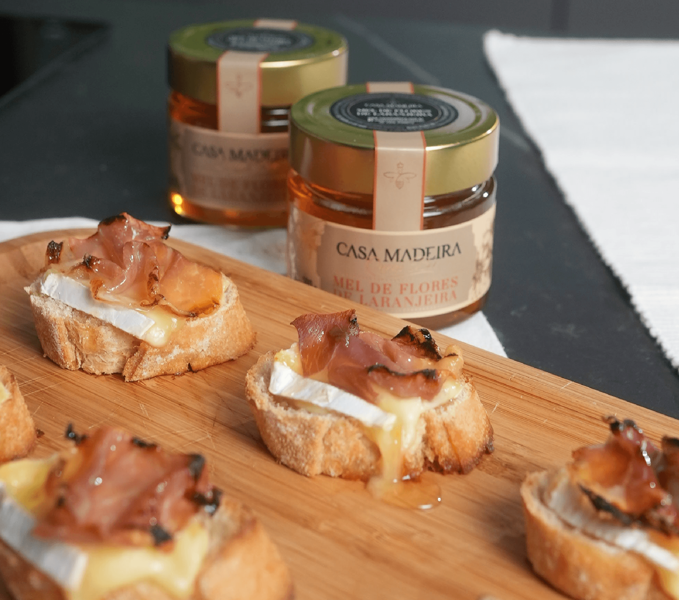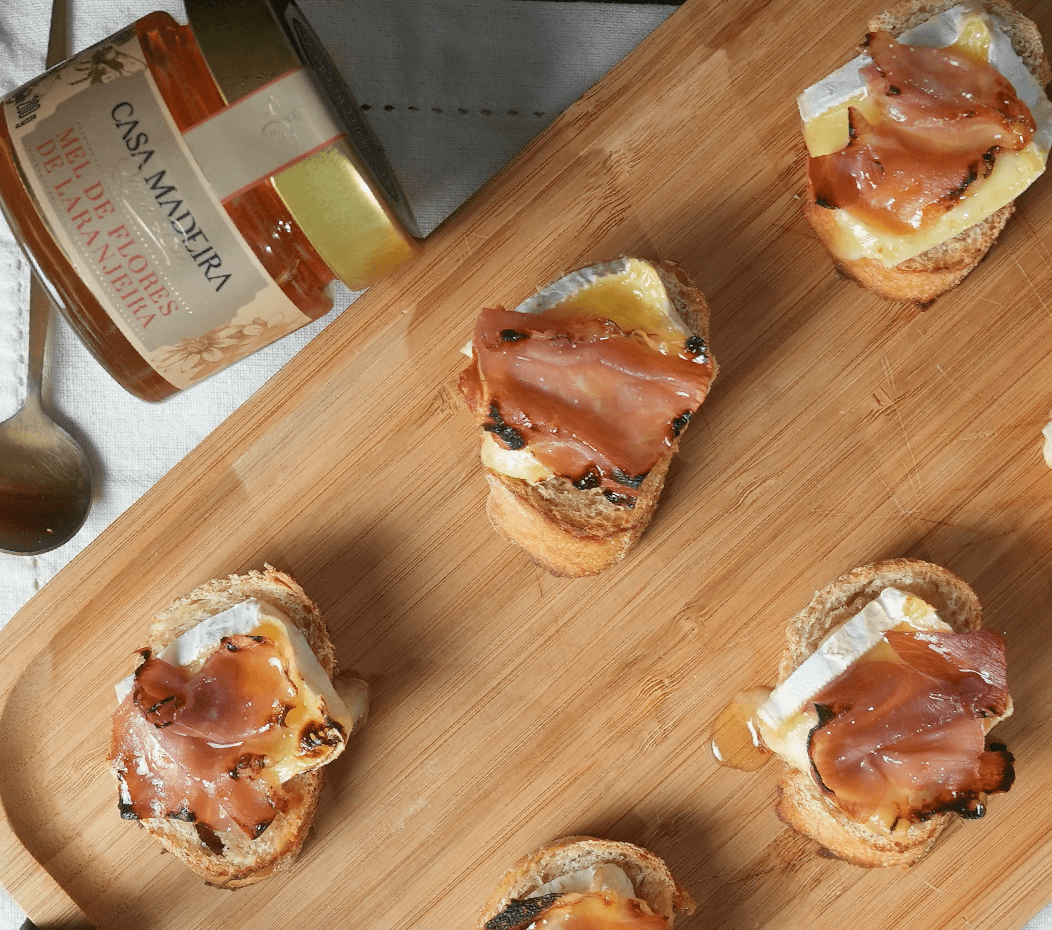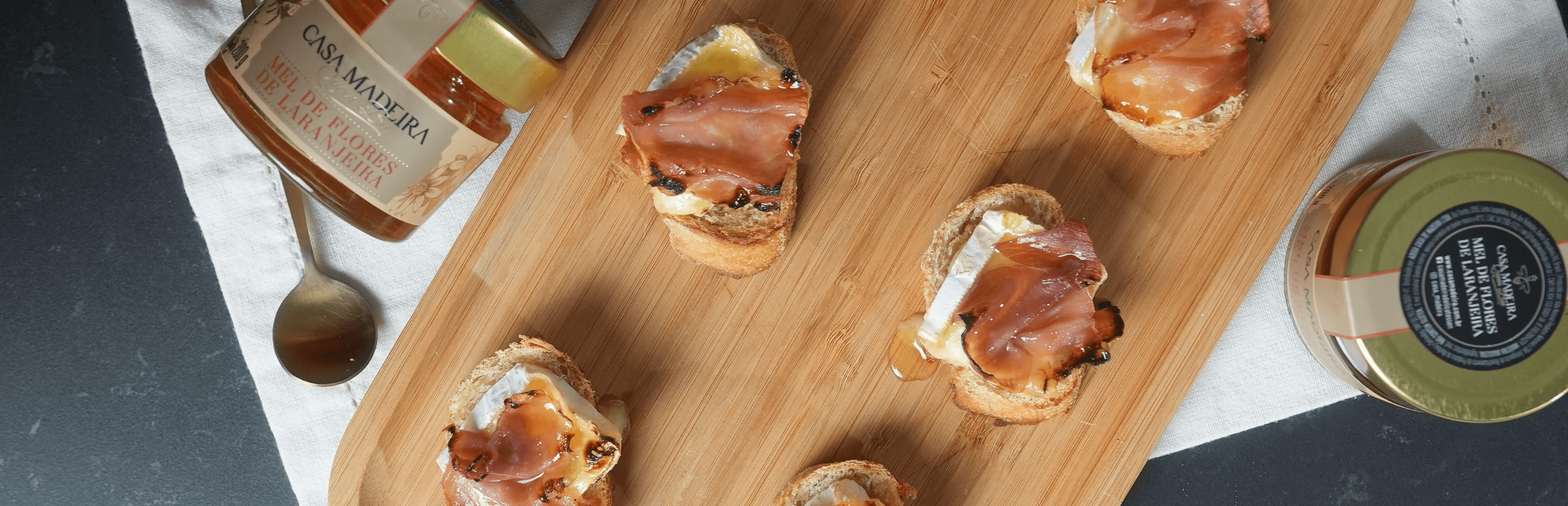 Bruschettas de Brie, Parma e Mel